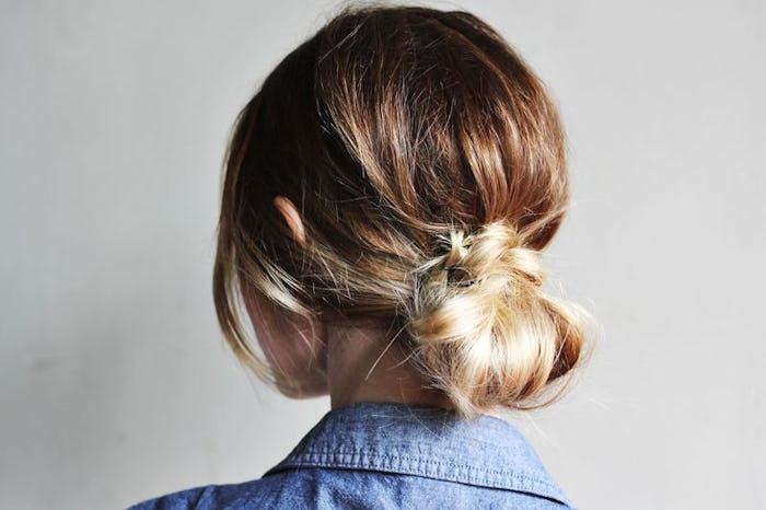 This easy braided top knot from Hello Glow looks chic as hell, and only takes a quick minute or two to throw together.