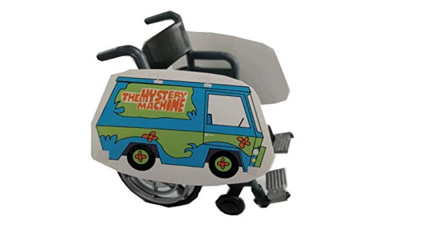 Nostalgic for Scooby Doo? This Mystery Machine wheelchair cover attaches to most wheelchairs and is made of flexible yet sturdy plastic for easy maneuvering. Just be sure to show your kids the magic that is Scooby Doo before they head out because they'll be sure to hear a lot of "Ruh-Rohs!" from well-meaning, equally nostalgic parents.