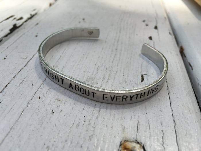Nothing would make my mother happier than the admission that she really was right about everything, after all these years. Why not say it with a piece of jewelry that literally says it? This mother's day bracelet is simple and understated, but the engraving packs a funny punch.