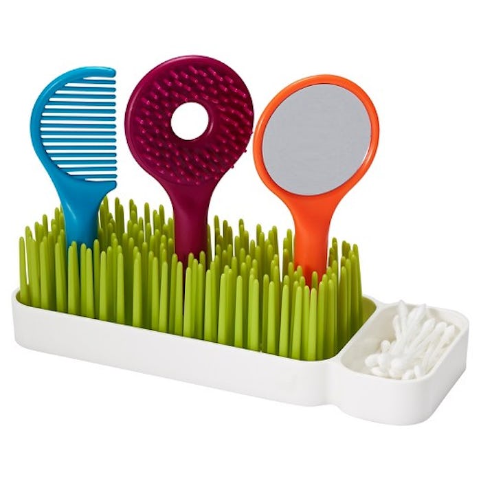 For moms who are teaching their toddlers to self groom, this Boon SPIFF Toddler Grooming Kit is the perfect gift. It comes with an adorable Boon grass tray that holds a comb, brush, and mirror, all with small, easy-to-grip handles for little hands. There’s also a side storage area perfect for rubber bands, barrettes, or cotton swabs. The simple, colorful design will definitely entice kids to practice good grooming, and get them on their way to great hair days without the struggle.
