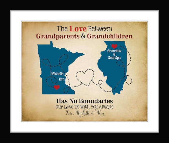 If your mother-in-law happens to live far away or just isn't as close as your grandchildren wish she was, this personalized print will show her that you all are always connected.