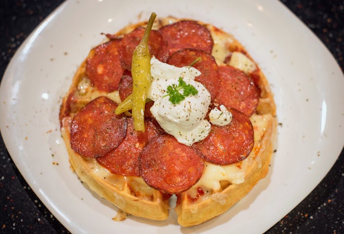 Whether you're stuck inside because of a global crisis or you really just don't want to hit up the grocery store again, it's time to get creative with the food you already have in your house. Did you know you have a secret weapon shoved in your freezer? Yep, the frozen waffle. There are literally so many things to do with frozen waffles, y'all. Because they're not only a delicious breakfast food that tastes amazing with a Leslie Knope-sized amount of whipped cream and plenty of maple syrup and fruit — they're also really delicious as a savory meal as well.