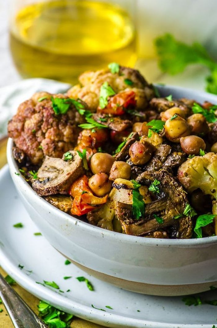 This Cauliflower Chickpea Sheet Pan Dinner from May I Have That Recipe takes only five minutes to prep, and 30 minutes in the oven — resulting in a flavorful, delicious, and robust dish. The authors over on the May I Have That Recipe blog also describe how you can tailor these sheet pan dinners to your tastes and whatever culinary flavor you're feeling that night. It's definitely worth checking out.