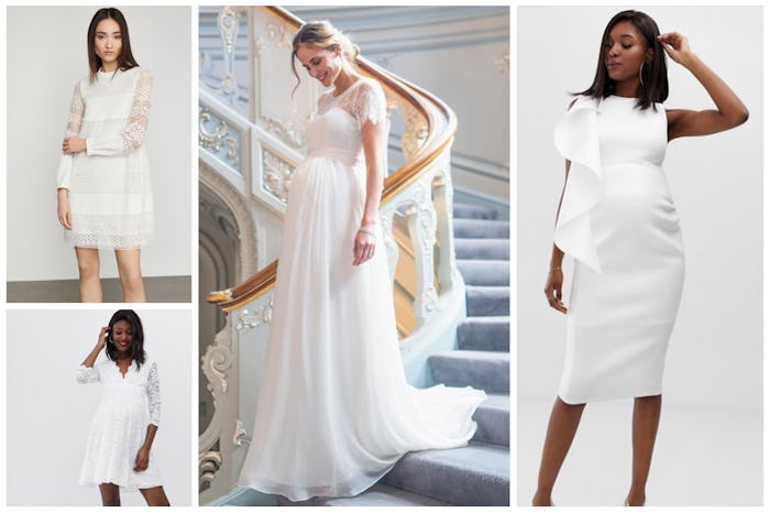 Shopping for wedding dresses is hard work. Anyone who's watched a single episode of Diva Brides or Say Yes To The Dress can tell you that it's a process, even if they've never bought one themselves. If you're expecting a little one sometime after you say "I do," accommodating that baby bump adds another layer of challenge to an already arduous task. Thankfully, as opinions have evolved, so have options, and there's an abundance of wedding dresses that look amazing on pregnant women and will make you feel like the goddess you are.