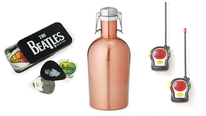 Here's an inconspicuous yet cool way to transport his latest home brew to the neighbor's Christmas party: a stainless steel growler in copper or black.