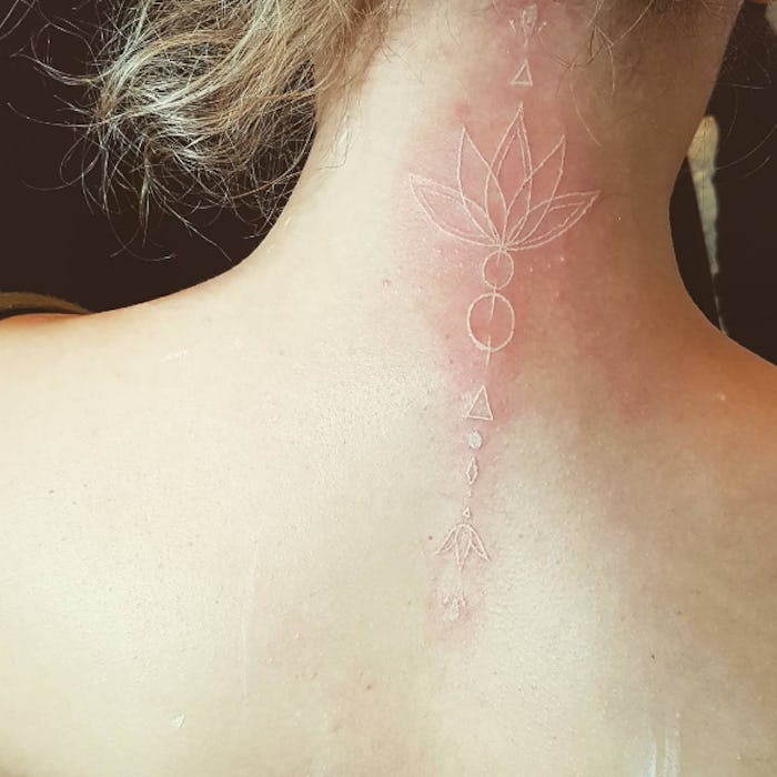 What really seems to have a lot of people hopping on the white ink bandwagon is that it's not as noticeable as black or colorful tattoos are. So, someone who might be a little hesitant to commit to a permanent piece of art on their body could feel more comfortable going the subtle route with a discreet, white tattoo. On the flip side, if you're an inked up veteran and you're looking to switch things up and try something new, an alternative white ink piece could be just the ticket. So if you're looking for something a little different, then check out these Instagram users whose white tattoos are anything but conventional.