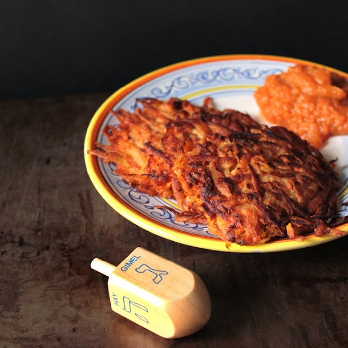 Whether you're a fan of the traditional, or are totally experimental in the kitchen, there are tons of great latke recipes out there that you can try this year. With different vegetables, spices and sauces, you can make latkes the highlight of any meal — even breakfast. So if you’re looking to spice up the holidays, try one of these 19 delectable latke. Each of these recipes is so scrumptious, you'll probably want to try a different one (or two) each of the eight nights.