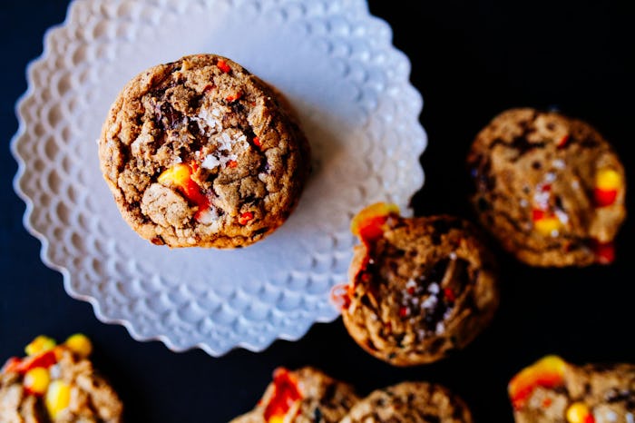 Sweet and salty always pair well together and these candy corn chocolate chip cookies with sea salt from The Crepes of Wrath are no different. Don't they sound incredible? The candy corns melt just enough to give you a sugary gooey bite and the salt keeps everything balanced.