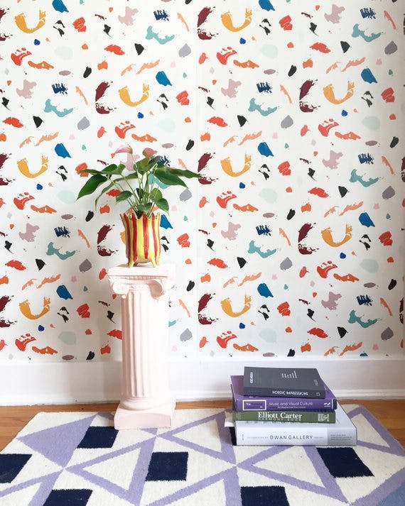 The new trends don't end with burnt orange, of course. Etsy is also predicting a year of maximalism (as in, clashing patterns, styles, and colors). Personally, I can imagine a wall of trendy gorgeous floral wallpaper in dark colors with plenty of burnt orange accents (or a white wallpaper covered with colorful splashes, burnt orange among them). Using that as the base of a room, you're free to play. (I would recommend a rich velvet sofa covered with textured pillows and soft blankets.)
