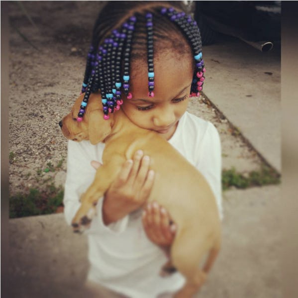 Look at that beautiful girl's face. Nothing but love on it for that sweet puppy, and they totally know it. That puppy is snuggling into her like she's the only thing they've ever known and no, I'm not crying, there's just something in my EYE.