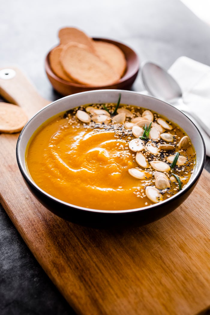 In case you haven't already learned, a pumpkin can do so much more than make your Starbucks latte taste better. The sweet gourd can work for almost any dessert out there, and it also happens to be perfect for sugary breakfast options. But don't underestimate its ability to work in a delicious main entree — pumpkin pairs well with savory foods and is a wonderful way to spice up a bowl of soup or a plate of pasta (among other things).