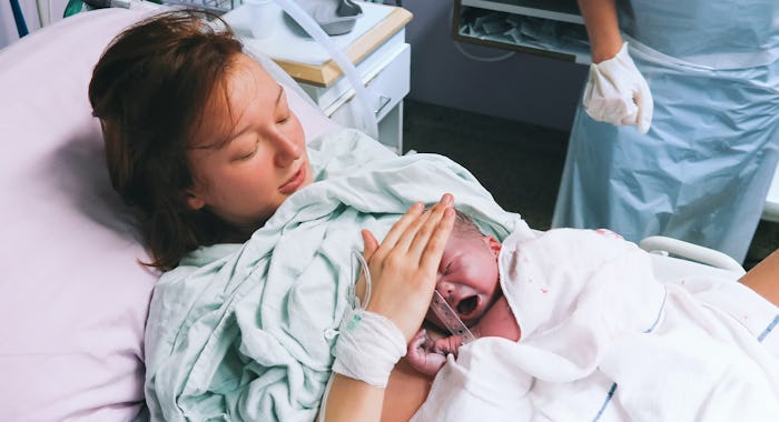 While the baby is only going to have a quick colostrum nursing session, the initial start at breastfeeding of their own volition during skin-to-skin is typically more successful than if the baby is whisked away to be weighed and checked and have medical procedures done before getting a chance to bond with its mother. Pediatrician Christina Smillie told Breastfeeding USA, "The mom should hold her baby, skin to skin — baby in a diaper only, mom with no shirt or bra — and just enjoy the baby. She should hold the baby upright, midline between her breasts, just cuddling the baby with no thought about breastfeeding. There's no hurry; we’re on baby time here." She went on to explain that if the baby doesn't immediately seem interested in breastfeeding, that's OK too, and she likely will wake up to the idea on her own time.