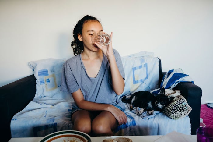 Chugging a ton of water right before bed could lead to some disruptions in your sleep. In the medical community, an intense urge to urinate that wakes you more than once at night is known as nocturia, according to the Cleveland Clinic. Although this issue can be caused by certain health conditions (such as a bladder obstruction), drinking too much right before bed can also lead to nocturia. Restricting fluids in the evenings is one way to help manage it. Of course, if anything about your nightly bathroom habits become concerning, then speak with your healthcare provider for advice.