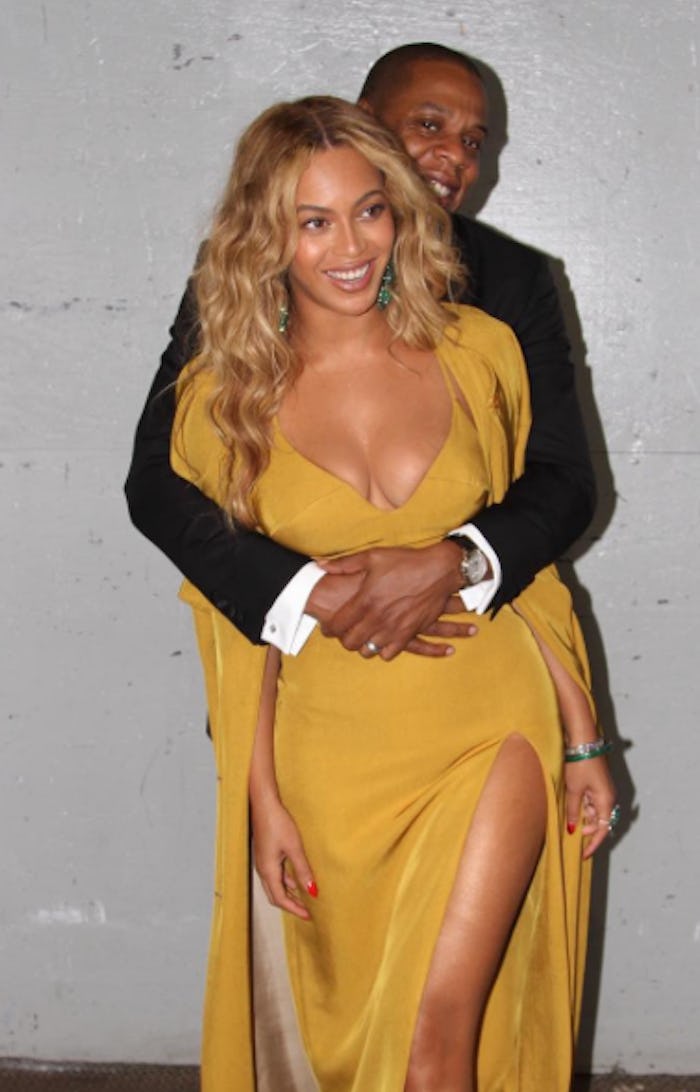 Bey looks stunning in this rich buttercup hue, and the draped overcoat has a cape-like vibe that is worthy of a queen.