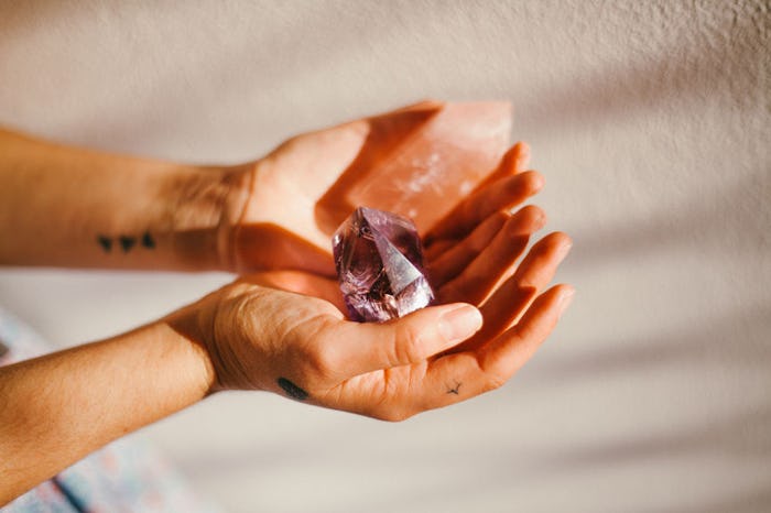 First, here's a little bit of info on how crystals work. Different crystals are thought to possess different properties, and the way you work with them can put those energies to good use. Knowing which crystal to pick for your purpose (in this case, sending your infant off to dreamland) is key, but that's just the first step, as Heather Askinosie, cofounder of Energy Muse and author of Crystal Muse told Refinery29. Connecting with your crystal and charging it with your good intentions is also key. “You can program your stones for calming in the same way that you program any crystal — with an intention," Askinosie told Well + Good. Try cleansing the crystal in moonlight, salt water, or the smoke of your favorite purifying incense, "state your intention while holding the crystal or stone in your hands."