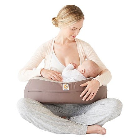 Nursing pillows, like the Ergobaby Natural Curve ($70), are great for giving you some extra support. A seven pound baby can feel like 70 pounds after nursing for a while, and a nursing pillow can work wonders for taking the edge off your back and arms.
