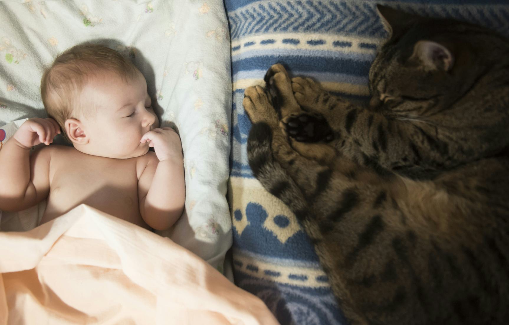 The day I brought my daughter home from the hospital, my three finicky cats met us at the door's entranceway. It was clear they thought I had abandoned them, so they seemed excited to welcome us home. Then they saw the baby in the baby carrier and changed their tune almost immediately. Cats are naturally cautious but mine are also protective, so they weren't about to hand over an inch of territory without putting up a fight. They weren't all that impressed by the very loud miniature human suddenly invading their space, either, so I knew I was going to have to put in some work if my newborn and my beloved pets were going to eventually get along.