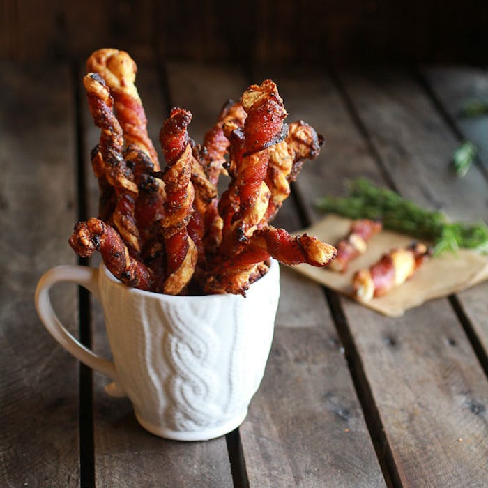 You can us bacon to wrap just about anything, from a not-so-appealing vegetable to a delicious, cheesy puff pastry like Half Baked Harvest.