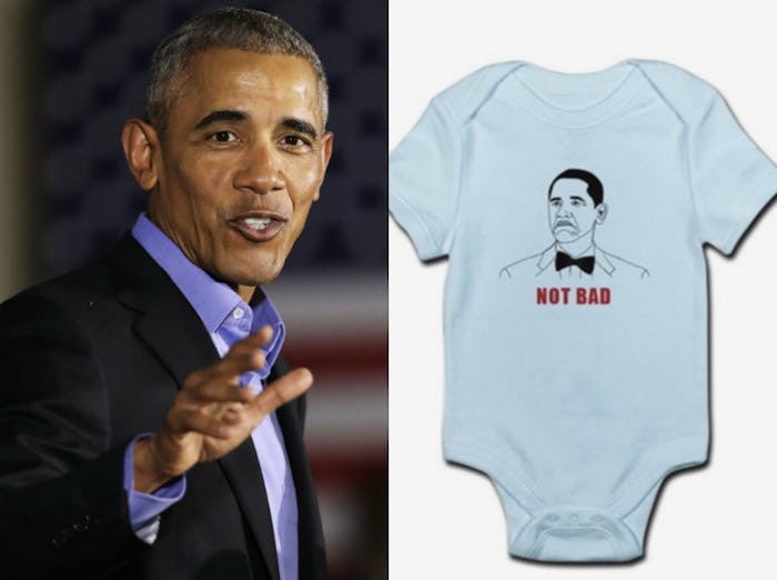 By relying on iconic photographs, images, and even memes, these Obama costumes are all in good spirits and appropriate for most any baby. (Seriously: the same cannot be said for all political garb that comes in infant sizes.) Although they may lightly tease the former president's clothing options or candid facial expressions, none of these costumes are intended to convey serious, biting political satire. Rather, they're more of a commentary on the way #44 influenced pop culture.