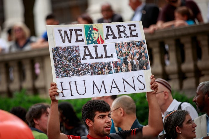 On Saturday, June 30, non-profit and advocacy groups such as the ACLU, Leadership Conference on Civil Rights, National Domestic Workers Alliance, and MoveOn are organizing the Families Belong Together march in Washington, D.C. The rally is in response to President Trump's immigration policies, which separated nearly 3,000 children from their parents at the U.S.-Mexico border. Despite the fact that the president has since reversed the policy and made a motion to reunite families, there are still thousands of displaced children in government detention centers. The message behind protests is that this kind of behavior and treatment is not OK, and these seven inspirational quotes for Families Belong Together signs can help you communicate that to the government.