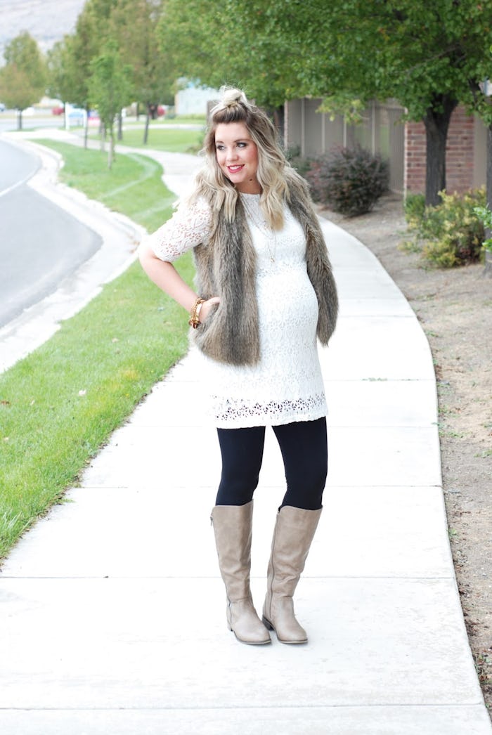 So this does not include the waistband; you want that as generous as possible. But a nice pair of maternity skinny jeans will pair well with flowy tunic tops for a modern, pulled-together look that is still extremely comfy.