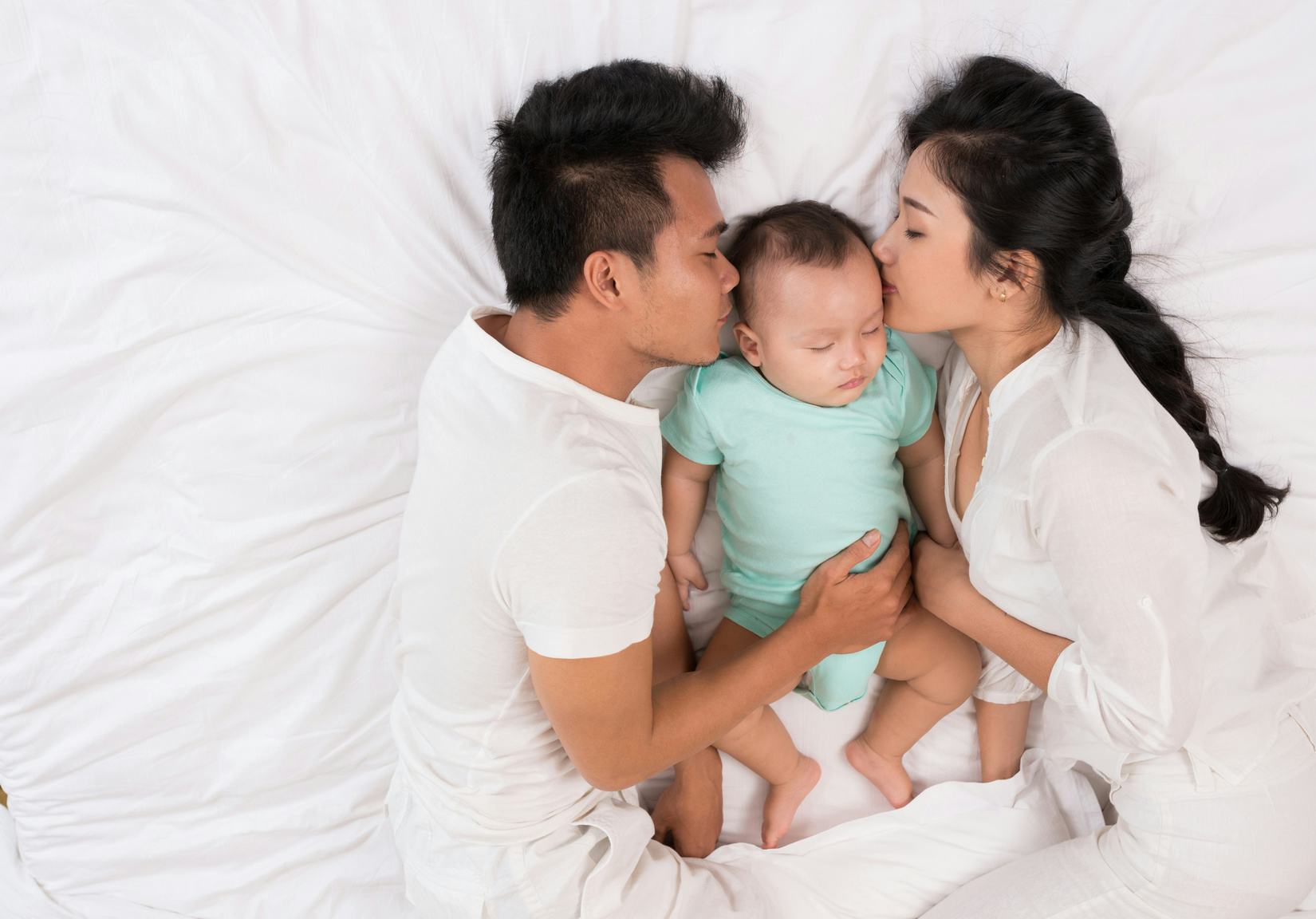 Studies have shown that co-sleeping with an infant promotes bonding, according to La Leche League International. My husband and I would stare at our son while he slept in our bed and talk about how happy he made us. When he woke up and saw us next to him, he would immediately smile rather than scream the way he would when he would wake up alone. My husband would often hold our sons hand while we slept, something he couldn't have done if our baby had been in another room.