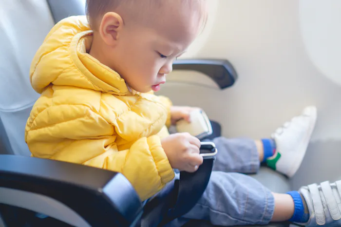 That cabin air can be so drying. Plus, dehydration can make jet lag's physical symptoms even worse, as explained in Harvard Health Publishing. Make sure your kid has plenty to drink before and during the trip, even if that entails an extra bathroom trip or two.