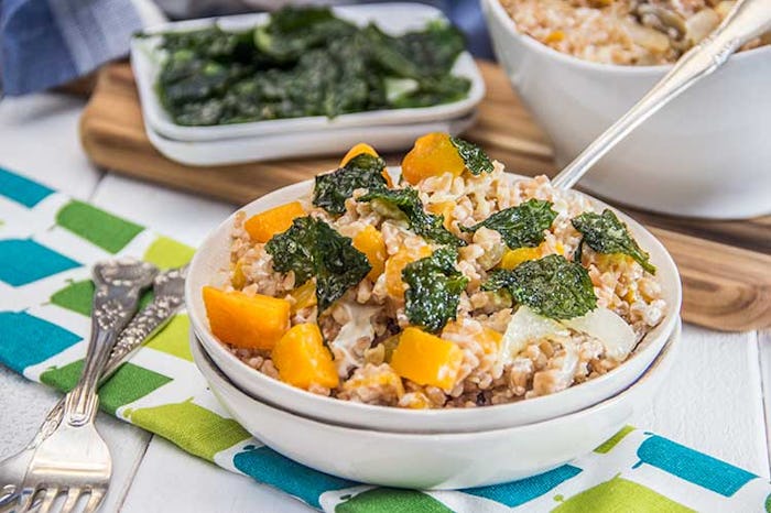 With less than 10 ingredients, The Scrumptious Pumpkin puts together a hearty salad that can be eaten as a main dish. Start a new tradition by serving this winter squash farro salad with crispy kale this Thanksgiving and be prepared to dish out seconds.