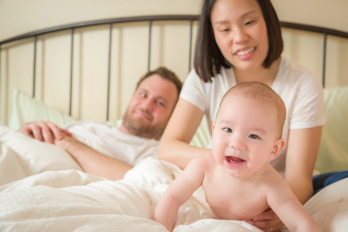 Sharing your room and sharing your bed are two very different things when it comes to co-sleeping. Co-sleeping is essentially sleeping very near your child, like bringing their bed into your room. Bed-sharing is when your baby actually sleeps with you in your bed. In an interview with NPR, pediatrician Daniel Flanders reported that, "despite the clear, elevated, independent risk of bed sharing with an infant, a high proportion of parents — even the most well-educated ones — end up bed sharing with their babies, whether they intend to or not." If you've slipped into bed-sharing, maybe try reeling it back to co-sleeping, and give yourself at least one space that's really yours.