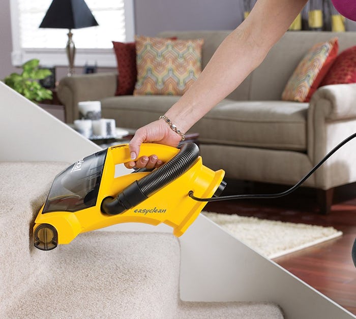 You'd be hard-pressed to find a lighter and more efficient handheld vacuum cleaner on the market. But what really sets this vacuum apart is the design. With a rotating head that can be used horizontally and vertically, you'll be able to suck up debris on furniture, floors, and hard to reach stairs. It also has a 20-foot cord and a dust canister that's simple to empty and clean for easy cleaning.