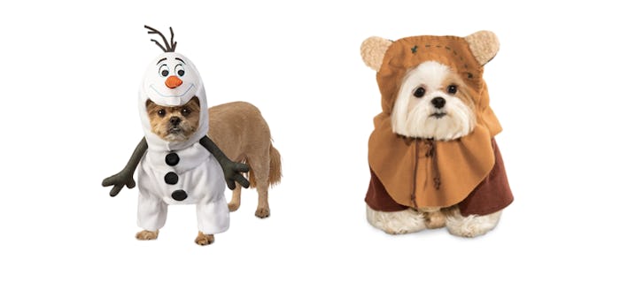 Olaf is one of Disney's most lovable sidekicks, making him the perfect costume for your sidekick. Between the buttons, twig arms, and carrot nose, your pooch will look like he's made of snow (and Disney magic). Prices start at $22.95 for small costumes and go up to $26.95 for XL.