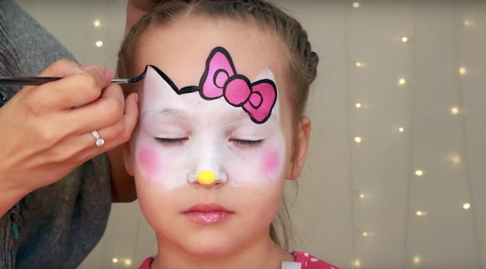 Really easy and truly adorable, this Hello Kitty face painting tutorial from Olga's Face & Body Art is sure to make your little kitty happy. All you need is a face paint palette with white, pink, and black ($7, Amazon), and a yellow face paint for the nose ($5, Amazon).
