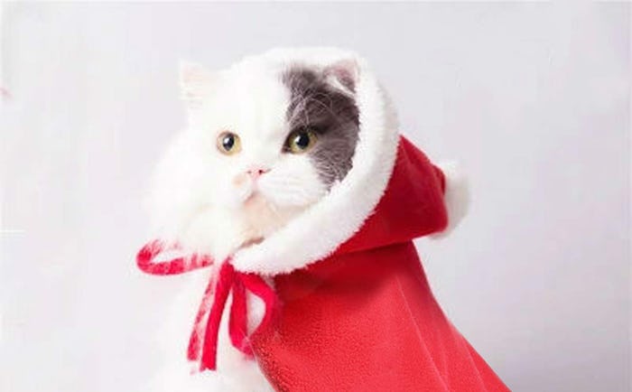 Do cats need holiday clothing? Of course not. Do they tolerate our attempts to put a hat or sweater on? Most of the time, though you might not get them to wear it for more than a few minutes. (Hopefully, your kitty is more the mellow Grumpy Cat type than the snarling jungle tiger type.) Are you going to dress up your cat? Even if you haven't done so in the past, once you see what's out there, you might make this the year you turn your cat into a feline style icon.