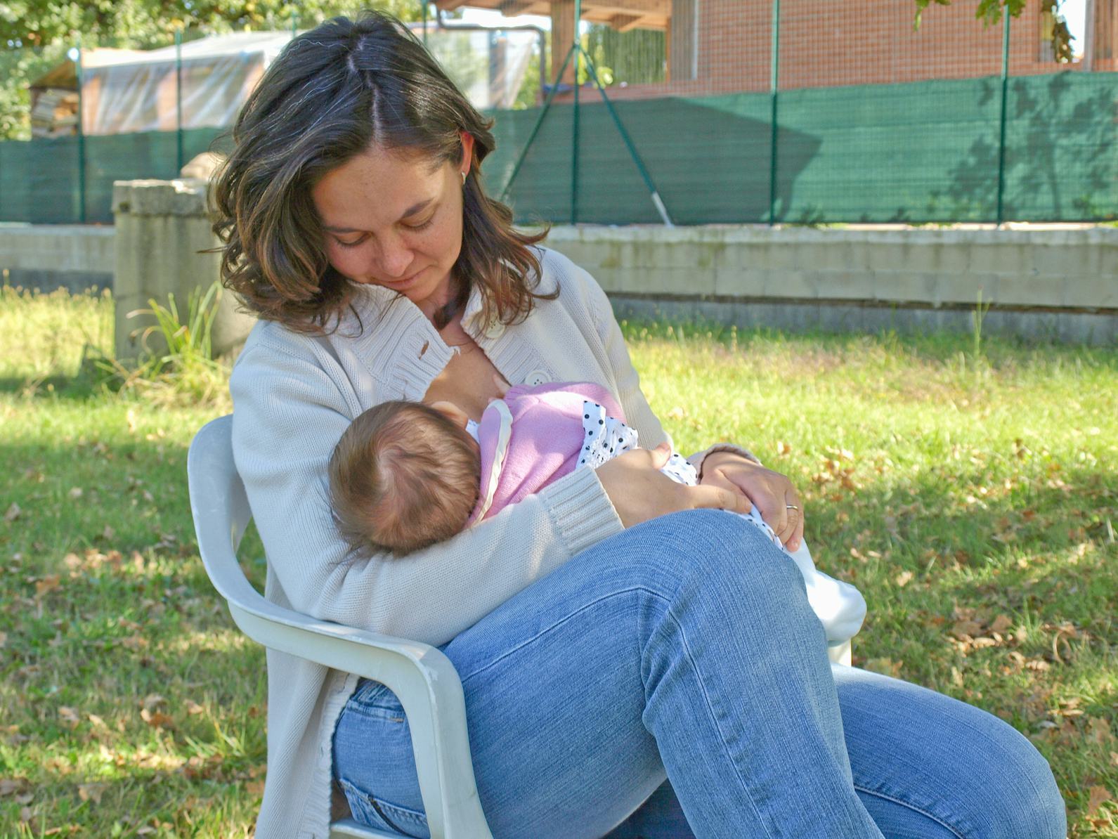 "For reflux, upright feeding positions can often be helpful," says Nguyen. "If you can, try having baby straddle your legs, facing your breast, and feed in an upright, sitting position." Nguyen notes that this position can be challenging, so it might be beneficial to find a local IBCLC to help with some positioning tricks and tips.