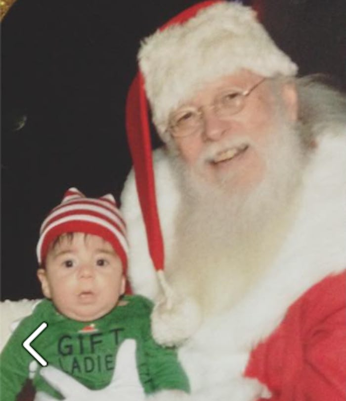 The first time my son posed for a picture with Santa he was just under a year old. He smiled sweetly but, to be honest, I think he couldn't differentiate Santa from any other adult. So, I won't really fault him for having a less-than-excited reaction, as he certainly didn't know he was in the presence of a magical being. The second time he visited Santa Claus, he was unsure and stared intently at (an authentic and very real) beard. He didn't speak or smile at all, so the picture looks like a ransom note.