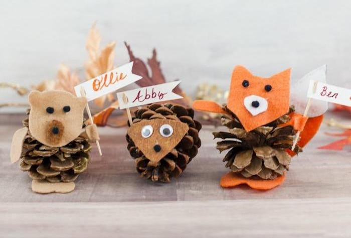 This adorable woodland set comes courtesy of Lynn Lilly, Michaels Maker craft expert and founder of the Craft Box Girls website. Using pine cones, felt, and a few other easy-to-find items, your kids can create mini dinner table companions. You can watch a video tutorial here.