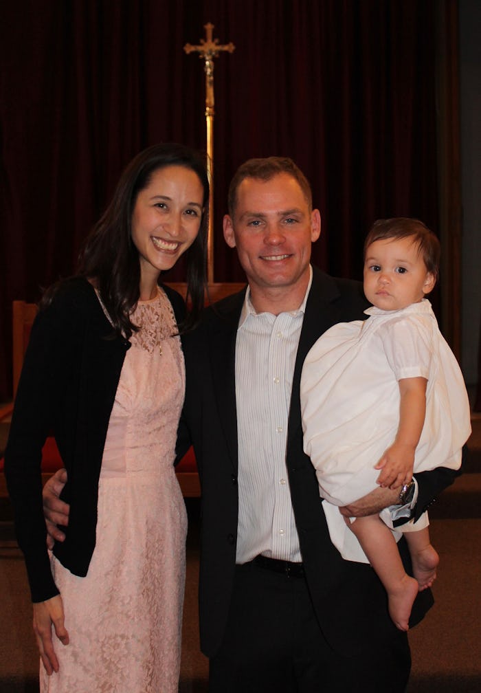 At least in the Catholic Church, getting your child baptized takes some work. Since it was kind of my husband's deal, he was in charge of contacting the parish, meeting with the coordinator, ensuring the correct paperwork was complete, and scheduling the baptism with the church and our family. During the baptism, he would hold our daughter.