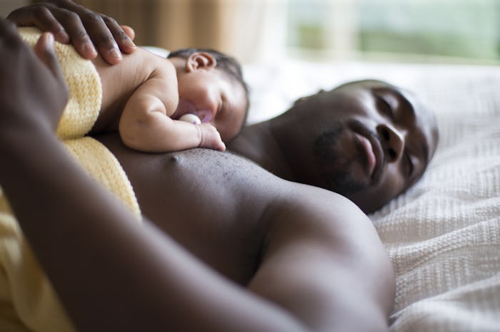 Before I became a mother, I assumed skin-to-skin contact, or "kangaroo care," with a newborn was meant to aid breastfeeding and that's it. Yeah, I was wrong. Turns out, skin-to-skin is the preferred way to hold and bond with all babies, regardless of how they're fed or who is feeding them. All parents, and not just moms, should use this technique regularly. So, when I asked dads to describe what it's like to do skin-to-skin for the first time, I realized most of them enjoyed this special time with their babies just as much as I did. Mom? Dad? Yeah, it doesn't matter. Skin-to-skin is awesome, regardless.
