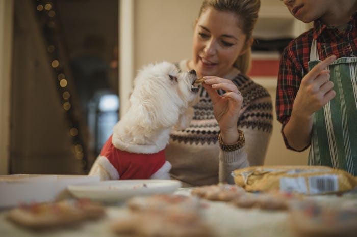 Sure, you could just buy your dog some treats or a bone as their holiday gift, or you don't have to get them anything at all if you're not feeling it (they don't know what Christmas is, guys), but a store-bought snack may not be the healthiest for your dog, and as University Animal Hospital points out, you have more control over what your dog is eating if you make the treats yourself. Plus, I know I always end up giving my dogs a taste of whatever I'm eating when they look at me with those begging eyes, and maybe if I had treats for them prepared, I wouldn't end up giving them so much people food that isn't good for them.