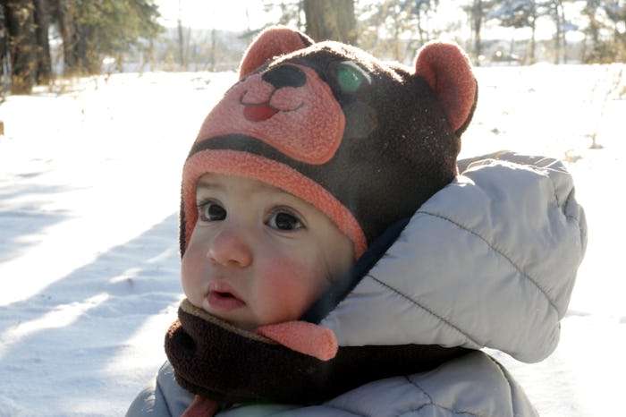 As Parents pointed out, kids under the age of 2 are more likely to be affected by frostbite and hypothermia, making it even more important to make sure they are dressed appropriately for the colder temperatures. But how do you know exactly how many layers are enough for your baby? What to Expect recommended parents dress their babies in the same number of layers they are wearing plus one. For example, an extra blanket over the snowsuit should be enough to keep him warm while you are out. Additionally, Mother & Baby recommended wool and polyester layers over cotton, as cotton holds more moisture and could end up making your baby cold if it gets wet.