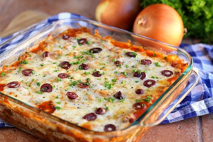 Spaghetti squash is one of the most fun vegetables to use in cooking because it legit looks like noodles. Oatmeal With a Fork's vegetable-packed spaghetti squash lasagna recipe ups the ante with broccoli, carrots, and sliced Kalamata olives.