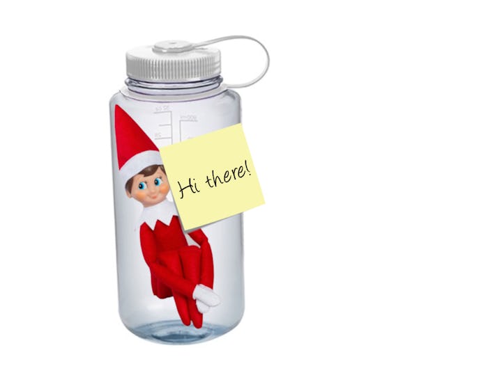 This one has been done time and again, but the sight of the elf inside a bottle always cracks me up. Plus, the execution couldn't be simpler. Put your elf inside a large water bottle ($13, Amazon) or jar. You can place sea creature stickers around the sides to make it look like he's in the ocean.