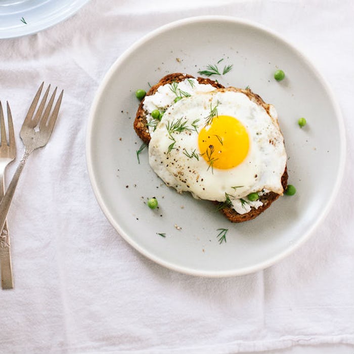 Some nights a little brinner sounds good. The savory flavors of Cookie and Kate's goat cheese and egg toasts with fresh peas and dill have all the chops of a full blown dinner — even green veggies! Try this dish next time you want an easy answer to your brinner craving.