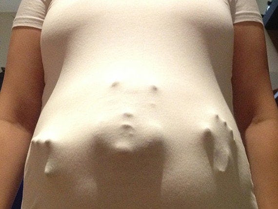 Who says your costume needs to be cutesy when you’re pregnant on Halloween? This demon baby prop really gets into the spooky spirit of the night. All you need is a tight white shirt to go with it and you’ll be the creepiest mom-to-be in sight.