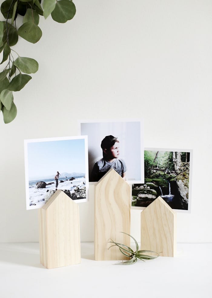 Moms are suckers for photos of their family, especially if they're beautifully displayed in these DIY wooden house displays from The Merry Thought.