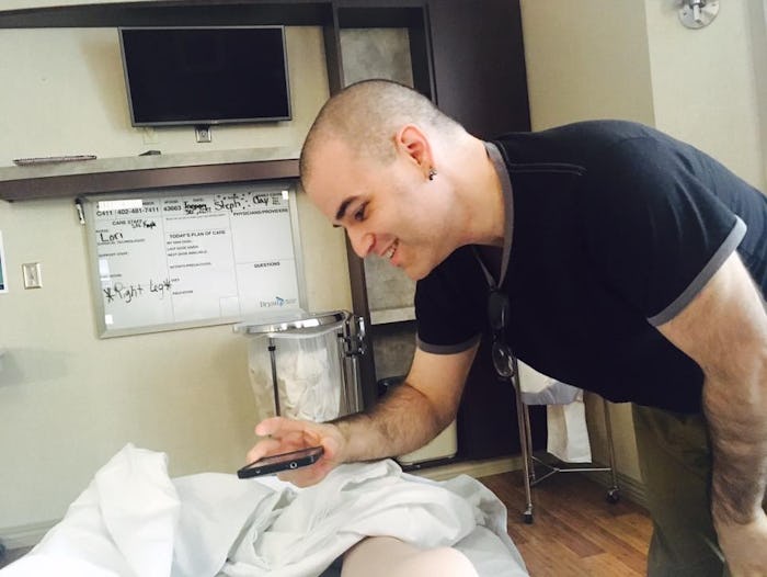 My partner didn't think of everything, of course, but the little things — like my favorite peppermint foot lotion and a geeky Adventure Time "bacon pancakes" t-shirt that's an inside joke between us — made me smile and brought me joy during labor. And for the record, when you're pushing another human being out of your body it's not easy to feel "joyful." My partner also brought a ridiculous amount of electronic devices that allowed him to stay connected with work and with family, and two chargers for every device. He also brought snacks, which ended up being important to both of us when it came to maintaining our strength and avoid getting cranky during the entire ordeal.