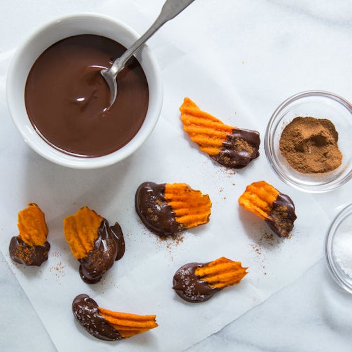 If you tell me that you’ve never fantasized about dipping potato chips into chocolate, I will not believe you (and I will also pray for your soul.) These chocolate-covered sweet potato chips from Jelly Toast are so easy to make and even better for you than traditional potato chips.