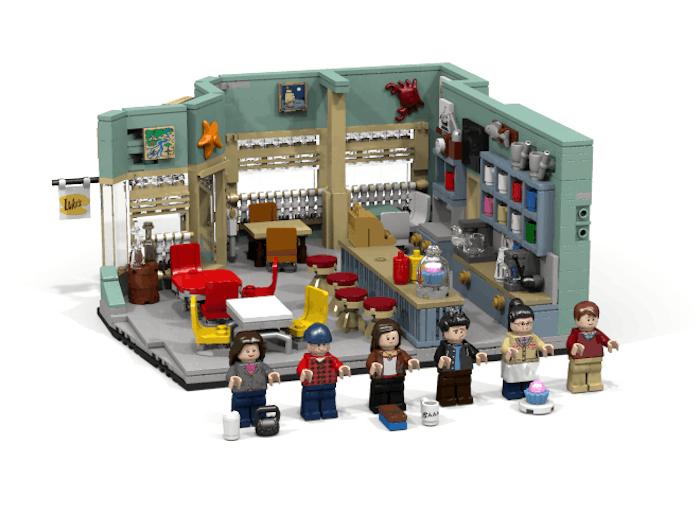 A user named Rainer Zufall submitted a concept for a Gilmore Girls Lego set on April 30 that is now more than halfway to that 10,000 supporter goal needed for an official review by Lego. Zufall's set features the iconic Luke's Diner and six of the show's major characters in Lego-form: Lorelai and Rory, Luke, Jess, Lane, and Kirk. In the set's description, Zufall wrote: