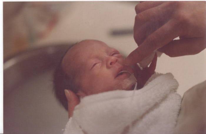 When I was born 30 years ago, I weighed only 2 lbs., 2 oz. My mom isn't entirely sure exactly how far along she was with me when I was born, but based on my size, she was probably just beginning her third trimester when she went into labor. Growing up, I saw the photos and heard the stories my family would tell about that time — about how small I was, about how I spent three months in the hospital after I was born, about the way they struggled to find clothes small enough to actually bring me home in when it was time — but, for the most part, it meant nothing to me. How could it? I had zero recollection of it and nothing tethering me to that experience other than other people's memories. But now, well, now being a preemie mom definitely means something to me.
