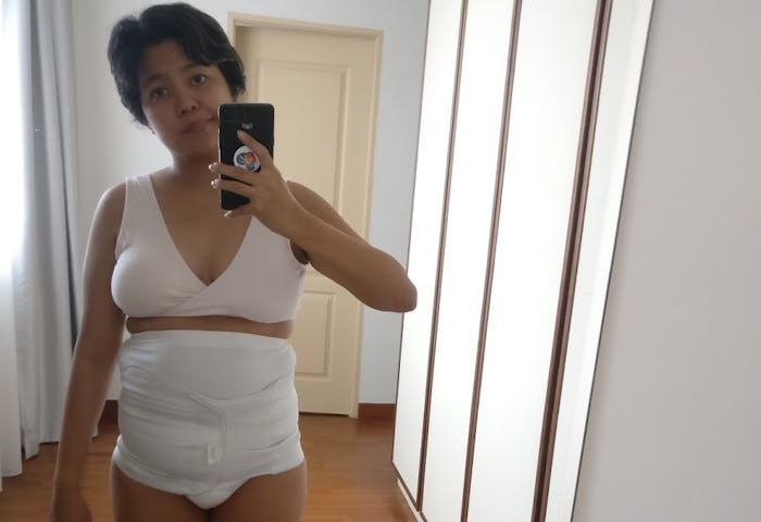 Thank you for providing him with shelter and for not falling apart no matter how hard he kicked and punched all throughout our third trimester. I hope the binder that I am wearing is helping your insides reorganize back to their usual spots.